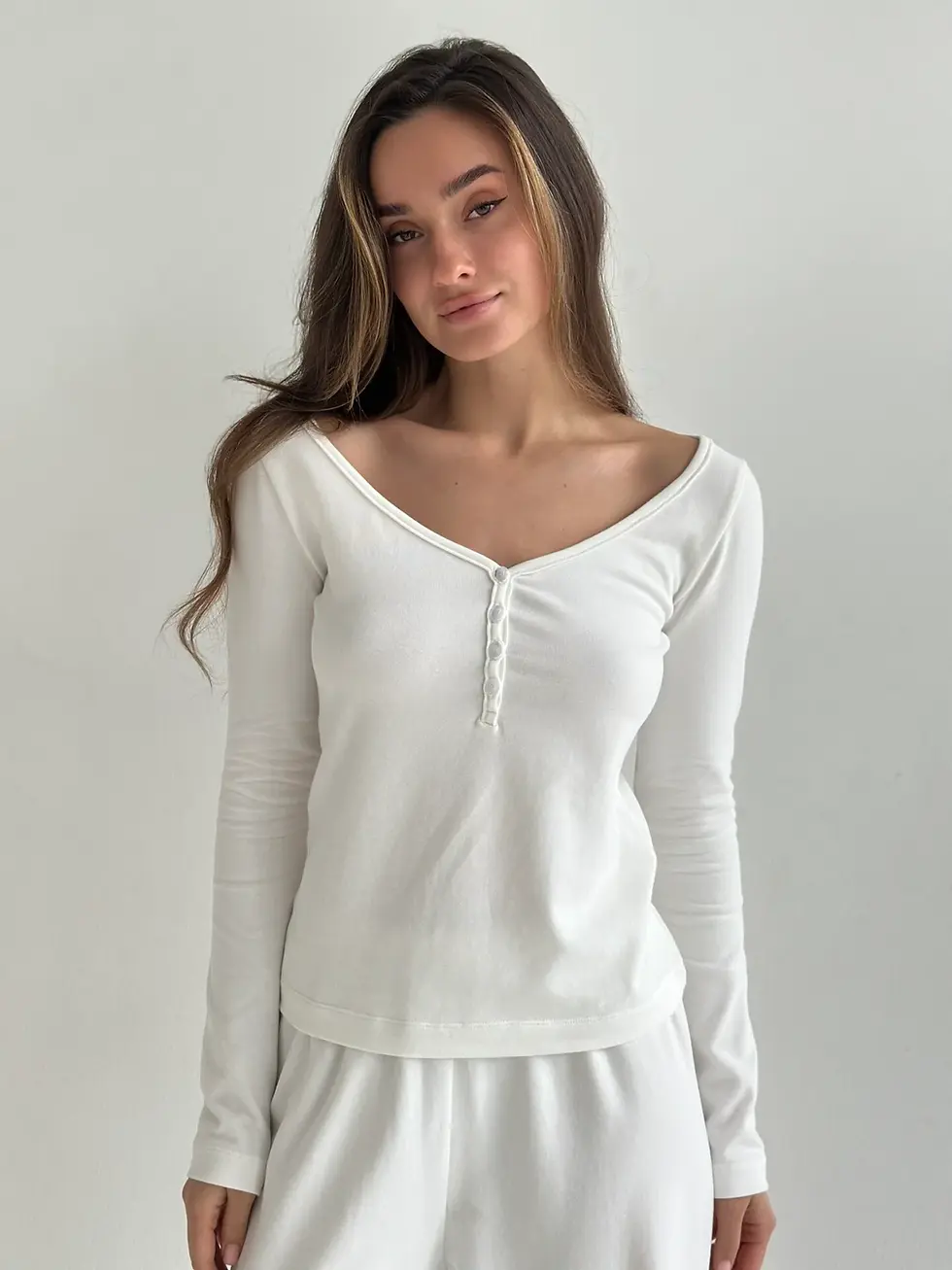 Трикотаж “Ніжність” Лонглів з V-подібним вирізом білий
